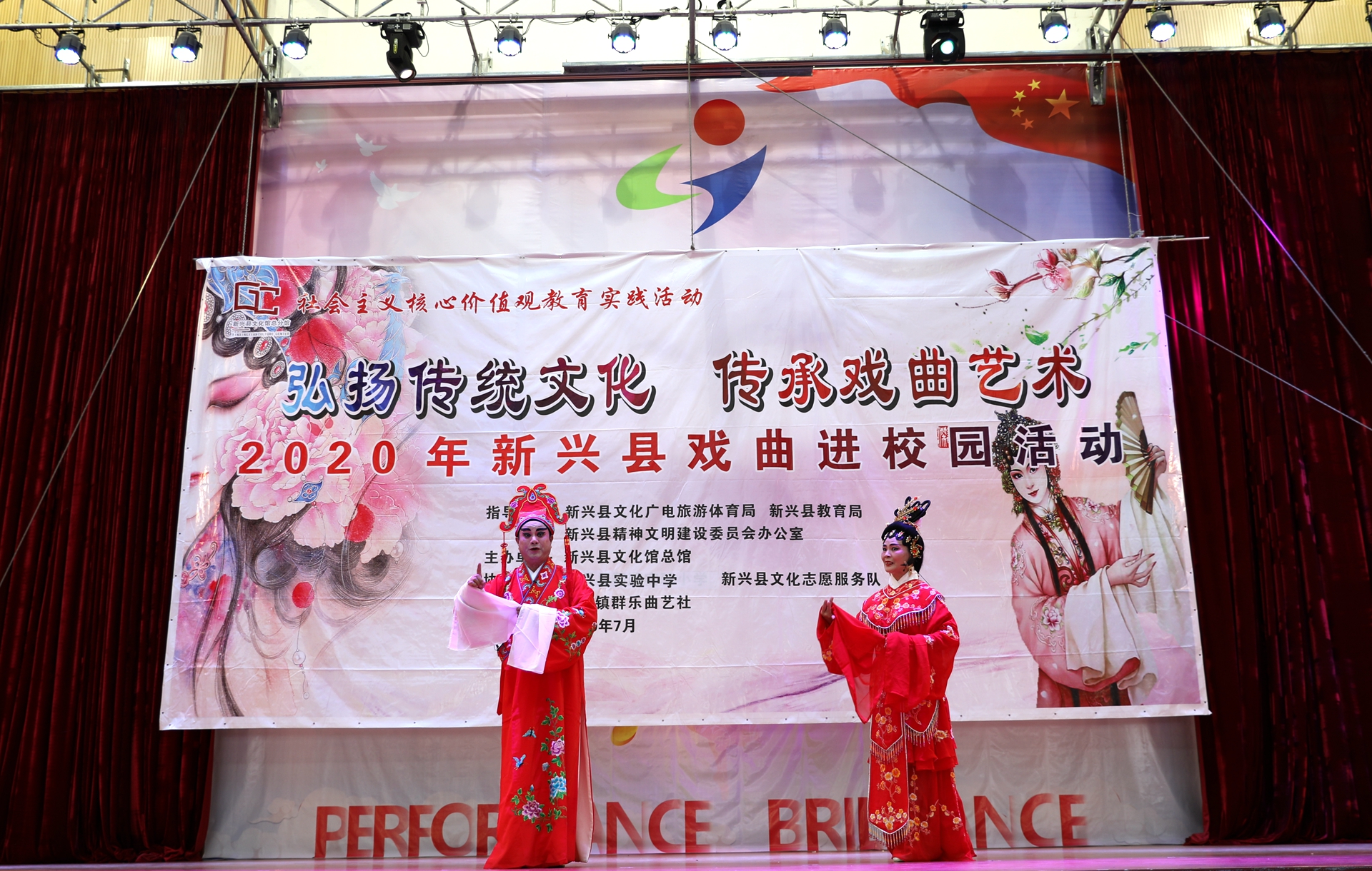 为弘扬中华优秀传统文化,增强文化自信,今天,由新兴县文化广电旅游体育局、新兴县教育局、新兴县精神文明建设委员会办公室指导,新兴县文化馆总馆主办,新兴县实验中学、新兴县文化志愿服务队、新城镇群乐曲艺社协办的“弘扬传统文化 传承戏曲艺术”-2020年新兴县戏曲进校园活动走进了实验中学。