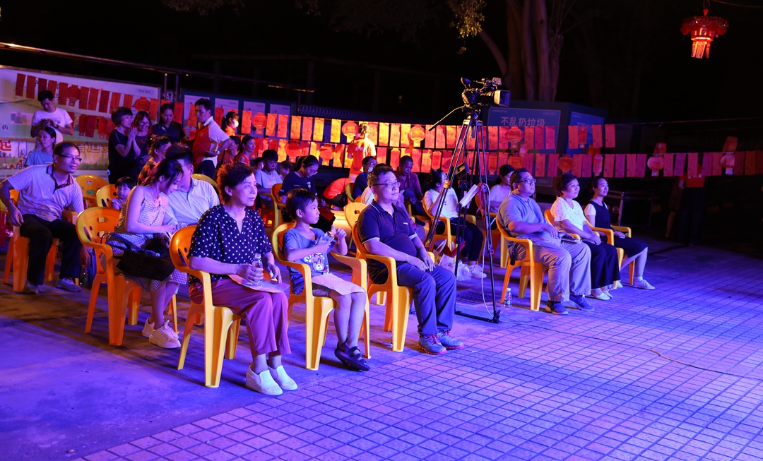 本次活动文艺演出,有粤剧折子戏《七月七日长生殿》、诗歌朗诵《七夕》·《鹊桥仙》、舞蹈《左手指月》、古筝独奏《春江花月夜》、朗诵《家风颂》、独唱《一生中最爱》、男女对唱《只有情永在》、舞蹈《琵琶行》,为群众献上文化大餐,赢得阵阵掌声。