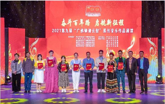 12月9日晚,由云浮市文化广电旅游体育局、广州市文化广电旅游局、佛山市文化广电旅游体育局、肇庆市文化广电旅游体育局、清远市文化广电旅游体育局、韶关市文化广电旅游体育局联合主办,云浮市文化馆承办,广州市文化馆、佛山市文化馆、肇庆市文化馆、清远市文化馆、韶关市文化馆协办的“奋斗百年路 启航新征程——2021年第九届“广佛肇清云韶”原创音乐作品展演”在云浮市文化馆小影剧院举行。来自广州、佛山、肇庆、清远、云浮、韶关6市创作表演的18个原创音乐作品逐一亮相,给市民朋友带来一场精彩的视听文化盛宴。原广东省文化和旅游厅副巡视员王莉,云浮市文化广电旅游体育局党组书记、局长黄小涧,以及“广佛肇清云韶”文广旅体(文广旅)局、文化馆的领导嘉宾出席了活动并观看了演出。云浮市新兴县文化馆选送歌舞节目《美丽乡村我的家》获得银奖及最佳作曲奖。