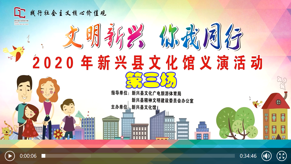 7641人文明是一盏灯,照亮别人,温暖自己。我们洒下汗水,收获的是希望;我们传播文明的种子,文明之花将开遍每个角落。弘扬社会主义核心价值观,做文明人,创文明城,这是我们每一个新兴人应尽的义务和责任。由新兴县文化广电旅游体育局、新兴县精神文化建设委员会办公室指导,新兴县文化馆主办的主题为“文明新兴 你我同行”-2020年新兴县文化馆义演活动,第三场义演播出啦。