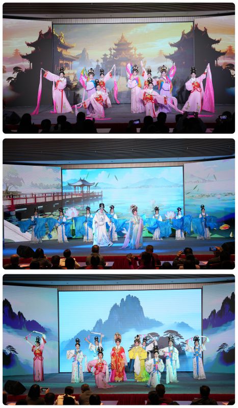 汇演在热烈氛围中拉开帷幕,节目内容精彩纷呈、形式多样,涵盖了粤剧折子戏、戏剧歌舞等多种表演形式。其中,《红鸾喜》以喜庆欢快的节奏点燃全场;《梦会太湖》《宝莲灯》《游园惊梦》《战马红妆》《骊宫贺寿舞霓裳》《沙家浜—智斗》《藏域鸾歌万里情》等经典折子戏接连上演,演员们以精湛的唱腔、细腻的表演和饱满的情感,生动刻画人物形象,深刻展现粤剧艺术的深厚底蕴与时代活力。整场演出高潮迭起,掌声不断,观众在婉转的唱腔与动人的故事中,沉浸式体验了粤剧艺术的独特韵味。